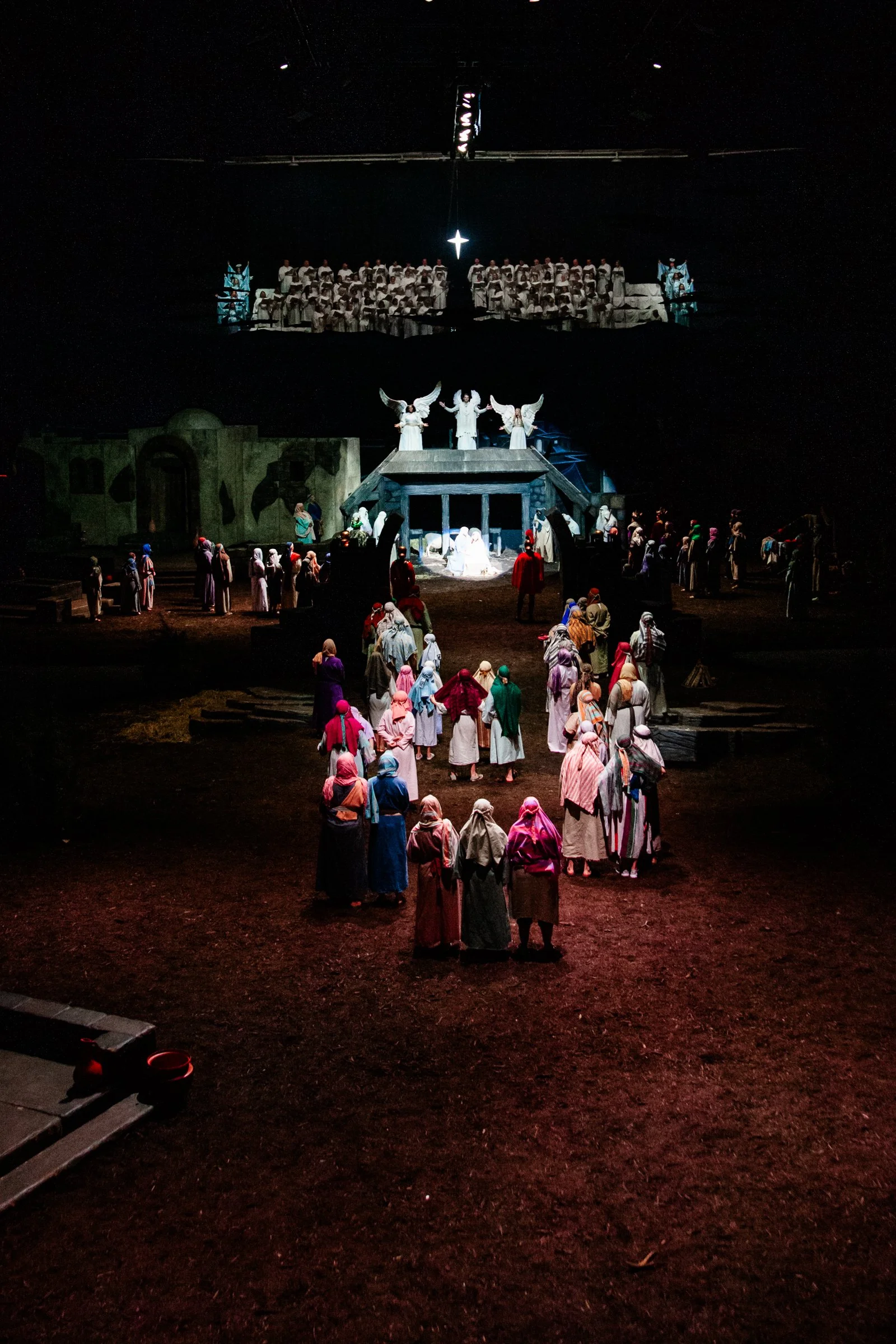 The combination of realistic settings, effective lighting, real animals, orchestral and choral music, and authentic costumes produces a powerful and dramatic hour-long presentation of the Christmas story – a story that is eternally the same, but always new. It appeals to audiences of all ages. Many families come again and again, making it part of their own Christmas tradition. The Pageant is thrilling to those who attend and also to those who work to create it each year.
